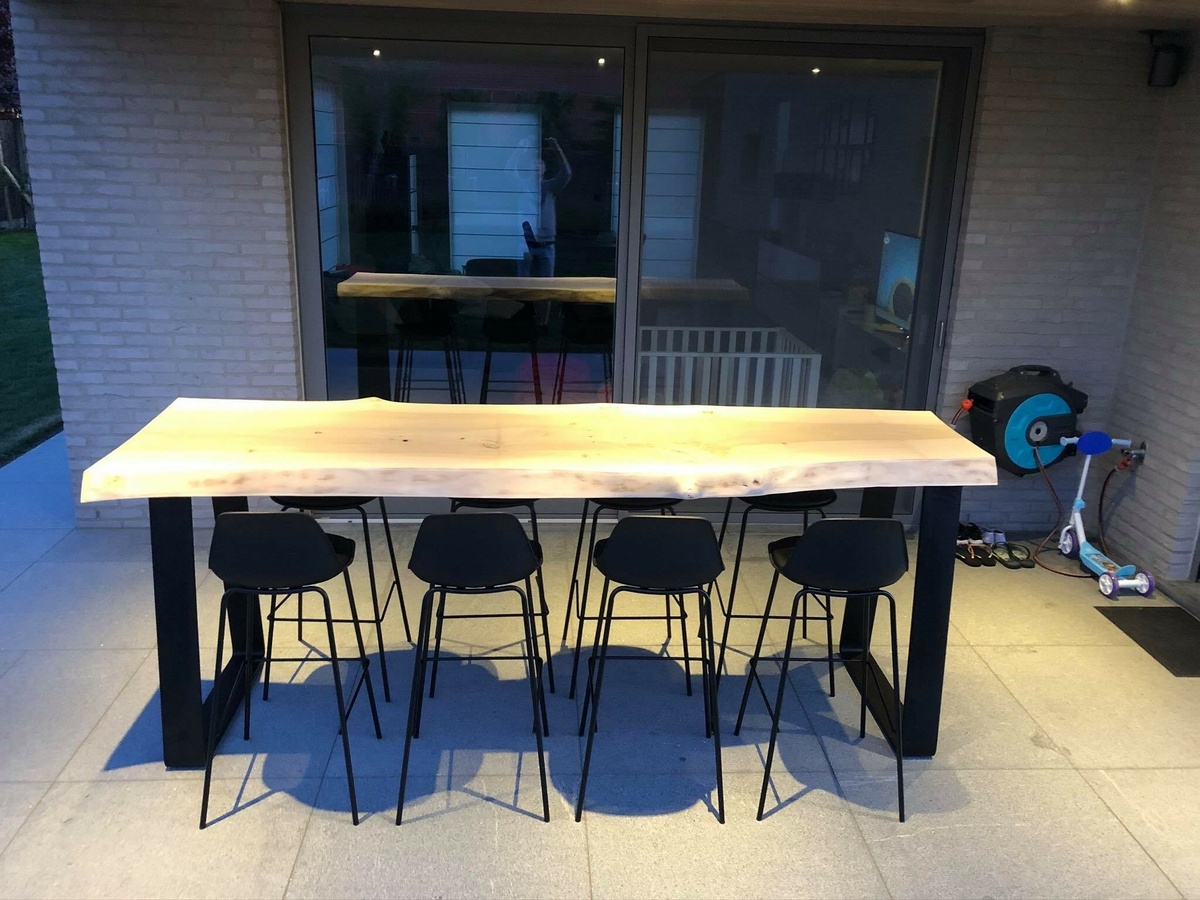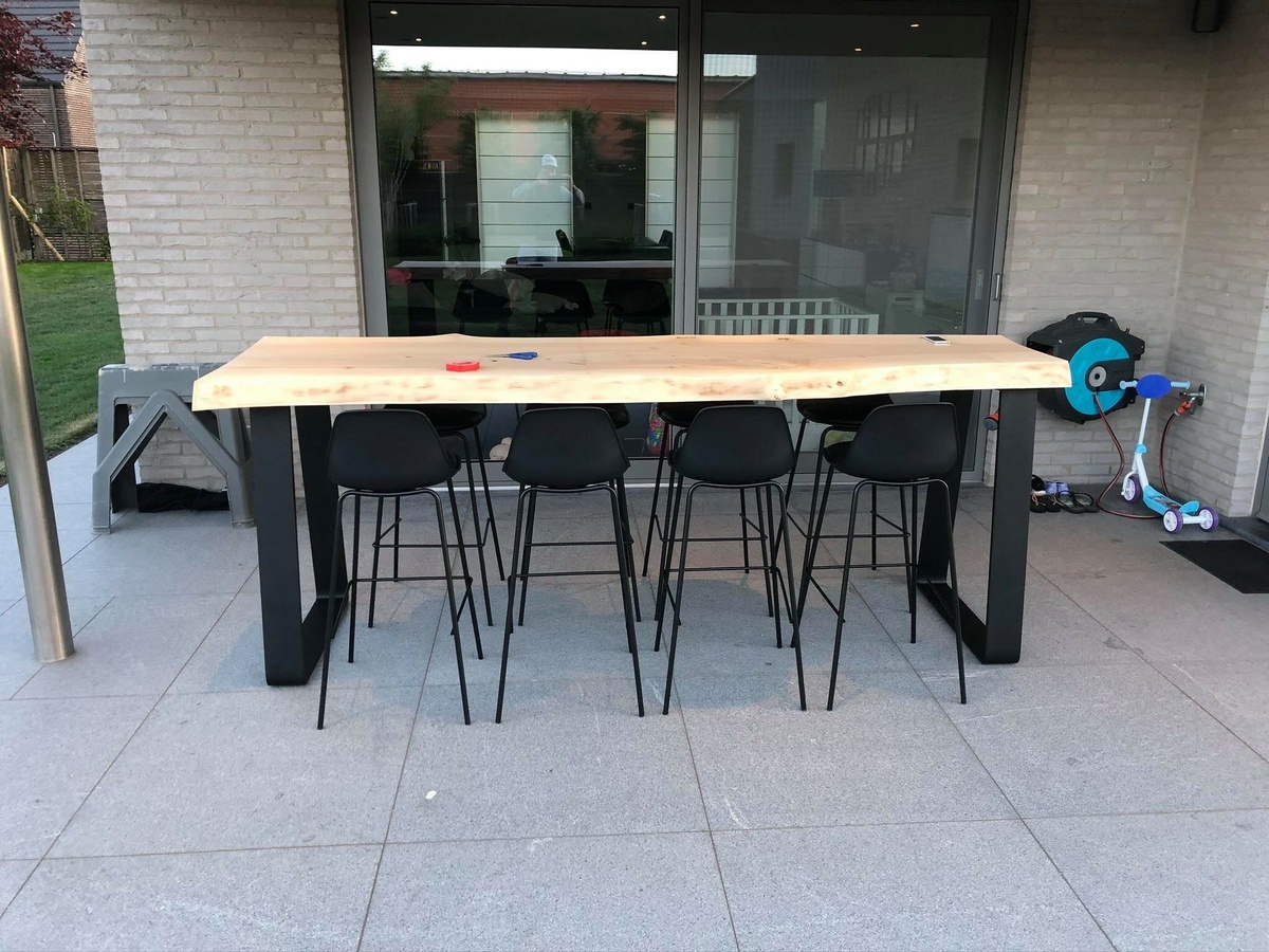 Ga terug Boomstamtafel voor buiten Deze boomstamtafel met populierenhout kreeg een warme thuis + + + + + + + + +